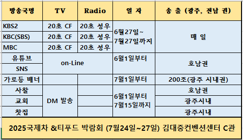 공중파 방송  TV 및 Radio 광고 편성표 입니다.